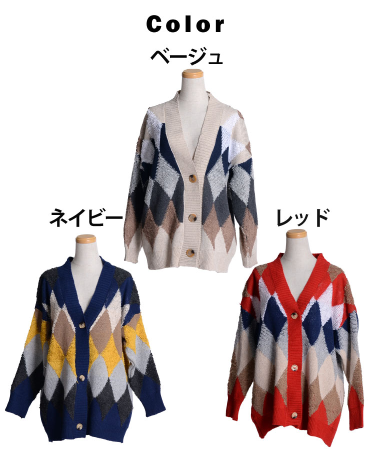 ※検索用※[ アジアン & カジュアル マーライ オリエンタル ショップ マーライ Oriental shop MARAI ][ アジアンファッション アジアン雑貨 アジア 衣料 服 エスニックファッション オリエンタル アジアンテイスト 後払い レディス レディース ]【 幾何学柄 アーガイル柄 ニットカーディガン ニットカーデ Vネックカーディガン レディース 長袖 カーデ カーディガン 羽織 羽織り 羽織もの 寒さ対策 防寒対策 秋冬 秋物 秋服 冬物 冬服 カラフル ビタミンカラー 配色 ひし形 菱形 アーガイル 幾何学模様 ビッグシルエット オーバーサイズ 大き目 大きめ 大きい 大きいサイズ ゆったり 幾何学パターン カワイイ 可愛い かわいい 個性的 個性派 お洒落 オシャレ おしゃれ ベージュ ネイビー レッド イエロー ブルー ネイビー 大人可愛い 】